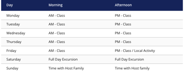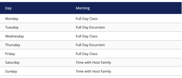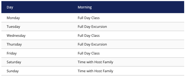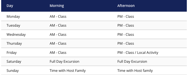 Lessons are Monday to Friday from 8:30 AM to 2:00 PM (with a lunch break)